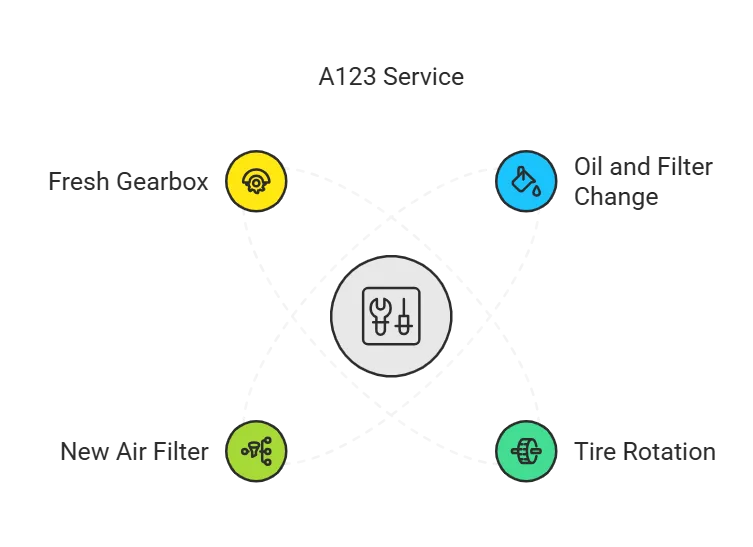 A123 Service isn’t just an ordinary service check; it is essential to ensure the smooth running of your vehicle. It has various things like an oil change to prevent sludge buildup, tire rotation for even wear, and transmission fluid replacement to save you from shifting issues that otherwise lead you to cough out lots of cash for repairs.